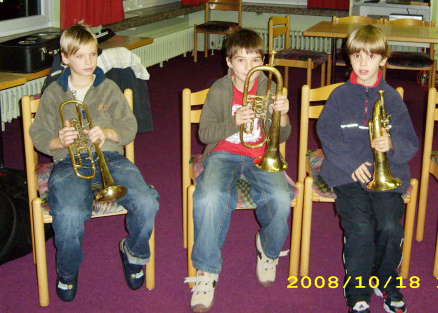 Herbst 2008: Jeremia und Samuel sind unter die Bläser gegangen (hier mit Freund Jonathan) und Valentin und Marian haben sich nicht unerheblich verändert: