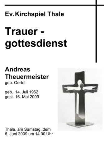 Der Trauergottesdienst ist nachzulesen: http://www.evangelischekirchethale.de/gemeindeleben/archiv/20090626.php