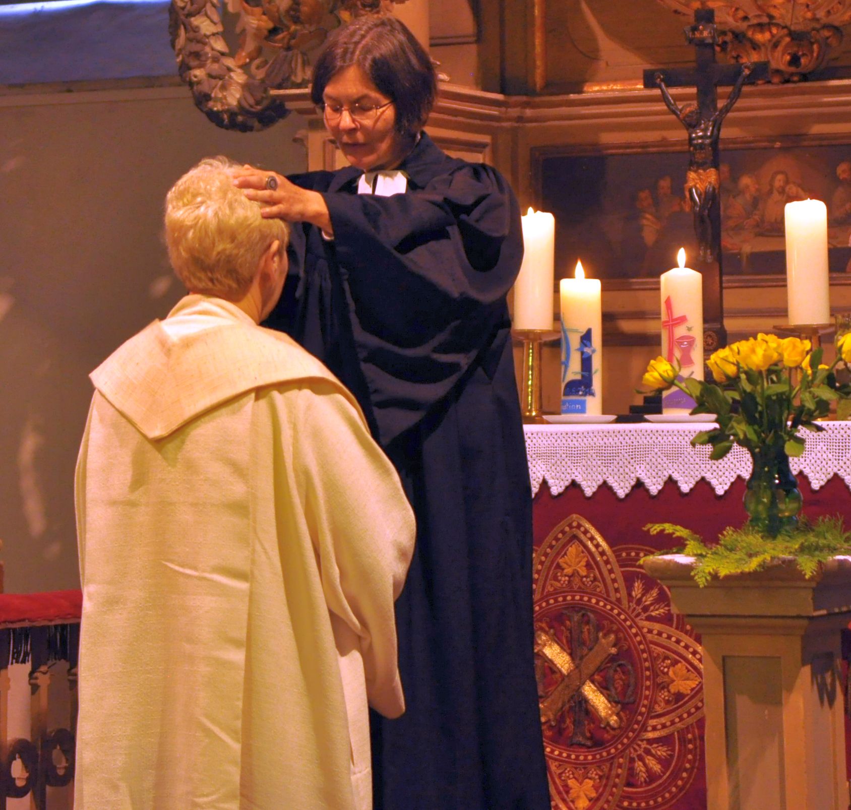 A.: Wieso seltsam? Es ist ein schöner Gottesdienst in einer vollen Kirche mit aufmerksamen Menschen, viel Musik und guter Stimmung. Und weil aller guten Dinge drei sind, gibt es drei inhaltliche Schwerpunkte: Wende-Gedenken, Reformation und Deine Verabschiedung.