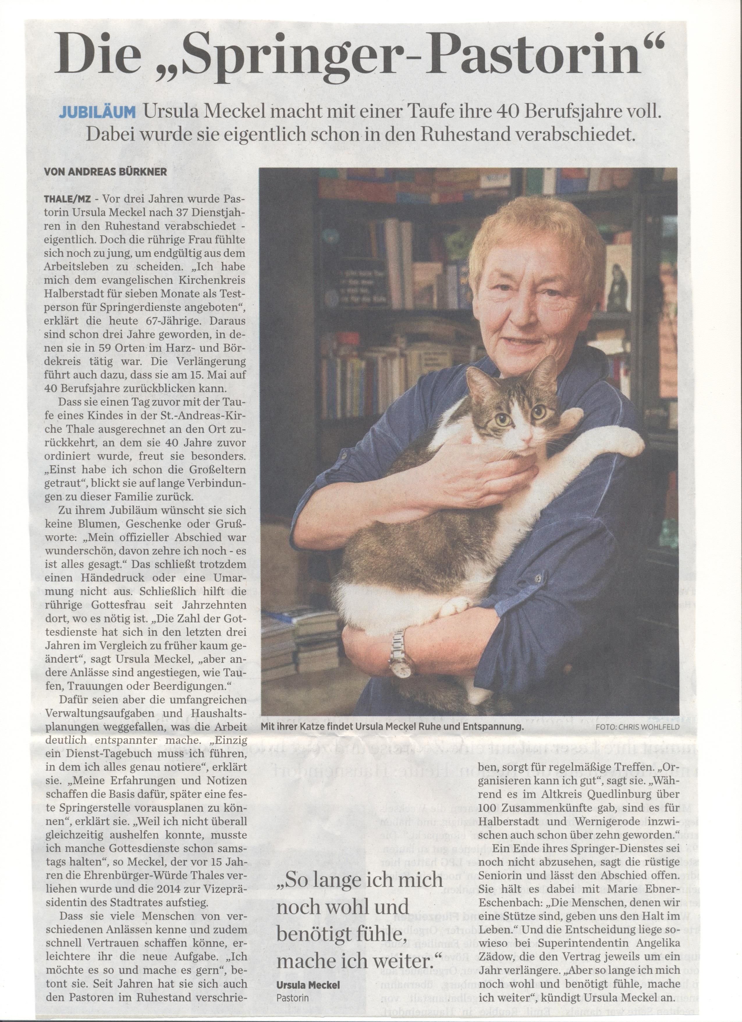 „Im Kirchenkreis Halberstadt sind mehr Pfarrstellen offen, als es Geistliche gibt, die diese auch besetzen könnten“, sagt Angelika Zädow. „Daher sind sogenannte Springer eine gute Möglichkeit, die Amtspflichten auch sicherzustellen. Ursula Meckel sei zudem sehr flexibel einsetzbar. „Wenn dann noch die Begeisterung hinzukommt, ist das eine gute Sache“, findet die Superintendentin.