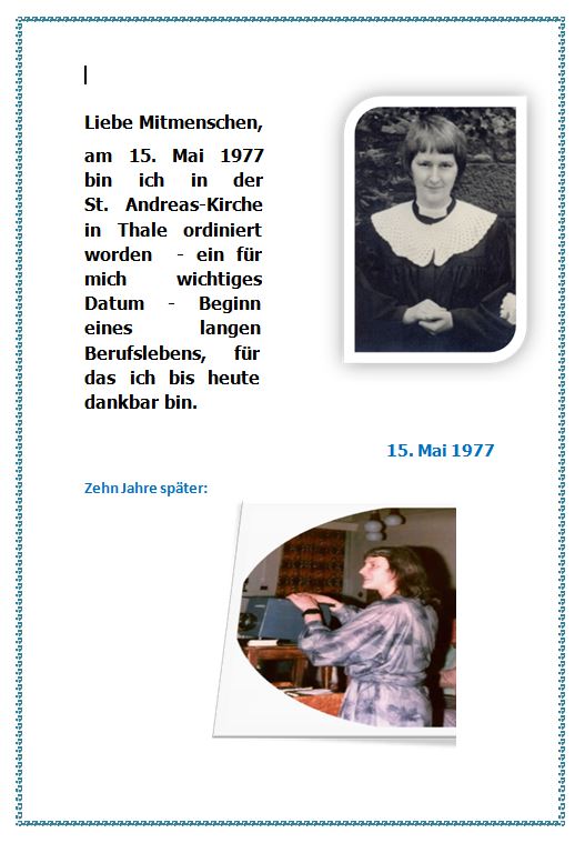 Am 15. Mai 1977 wurde ich in der St. Andreas - Kirche Thale ordiniert.